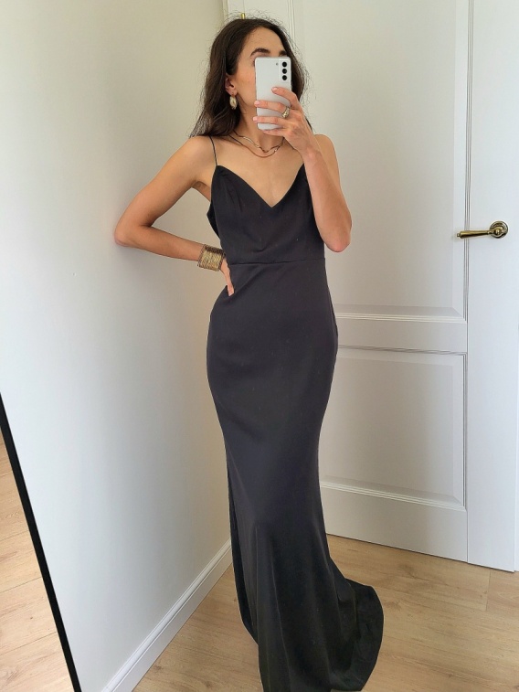 Czarna satynowa sukienka maxi z odkrytymi plecami