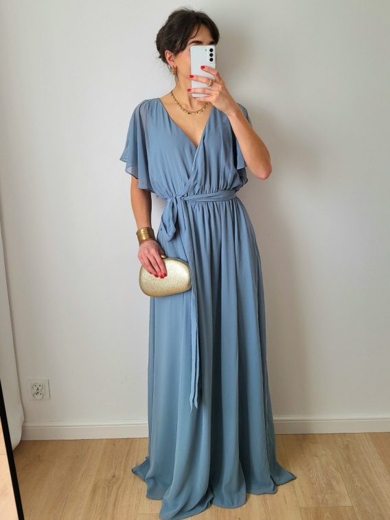 Długa błękitna sukienka wizytowa XXL