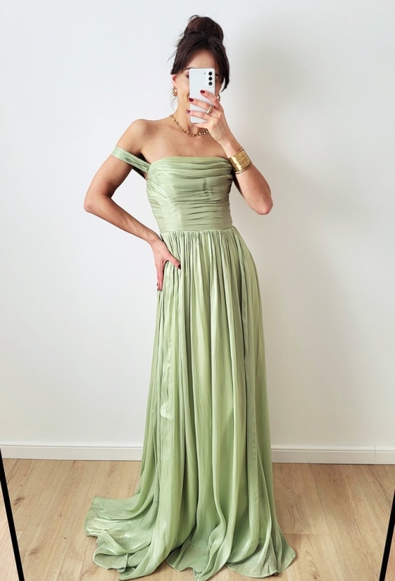 Iness długa sukienka z gorsetem pistacjowa
