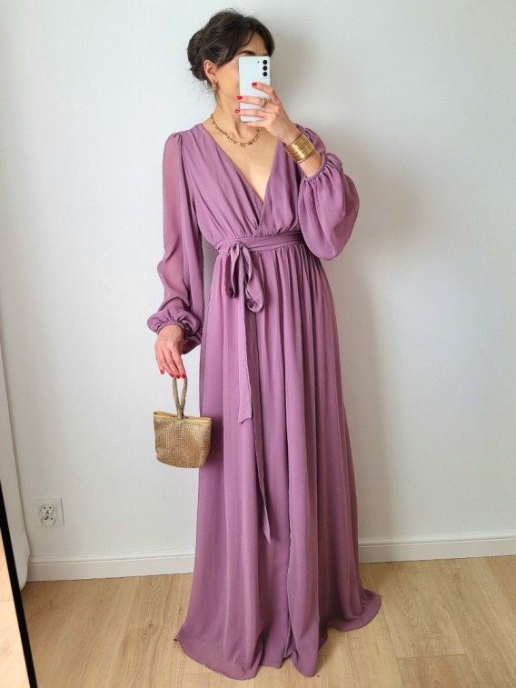 Liliowa długa sukienka wizytowa XXL