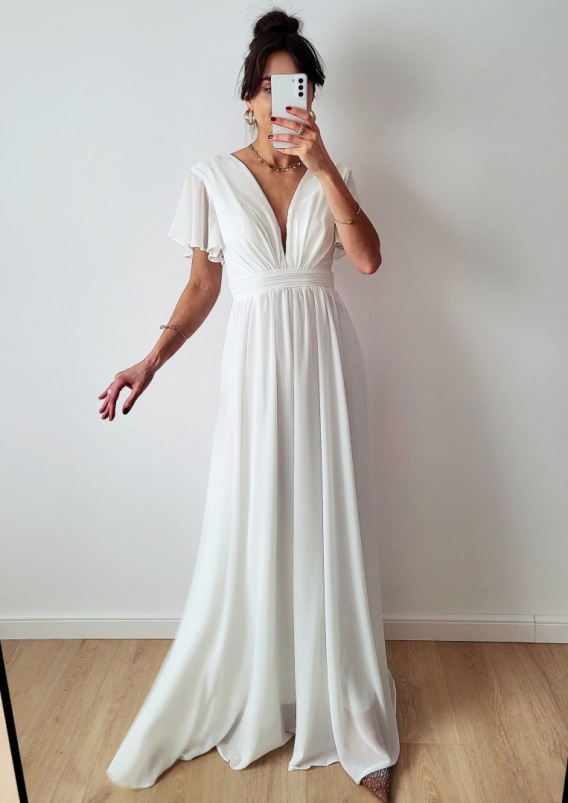 Tessa biała suknia o prostym zwiewnym kroju